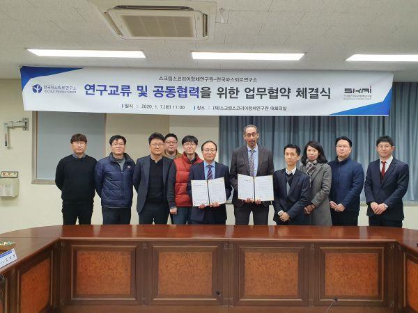 스크립스코리아항체연구원과 한국파스퇴르연구소는 7일 항체신약 및 감염병 치료제 개발 연구교류와 상호 공동협력 강화를 위한 업무협약을 체결했다.