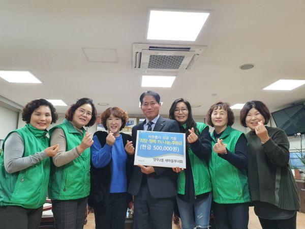 양주시 양주2동 새마을부녀회는 7일 양주2동 행정복지센터를 방문해 관내 저소득 소외계층을 위해 써달라며 이웃돕기 성금 50만원을 기탁했다.