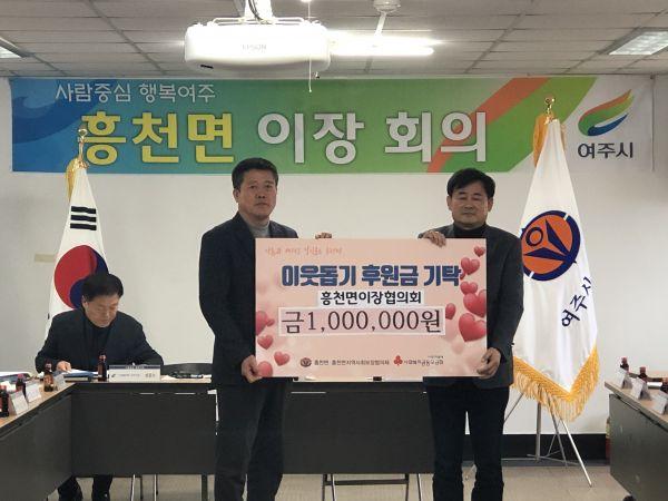 지난 6일 여주시 흥천면이장협의회는 흥천면 저소득 주민을 위한 이웃돕기 성금 100만원과 쌀 20kg 35포를 기탁했다.