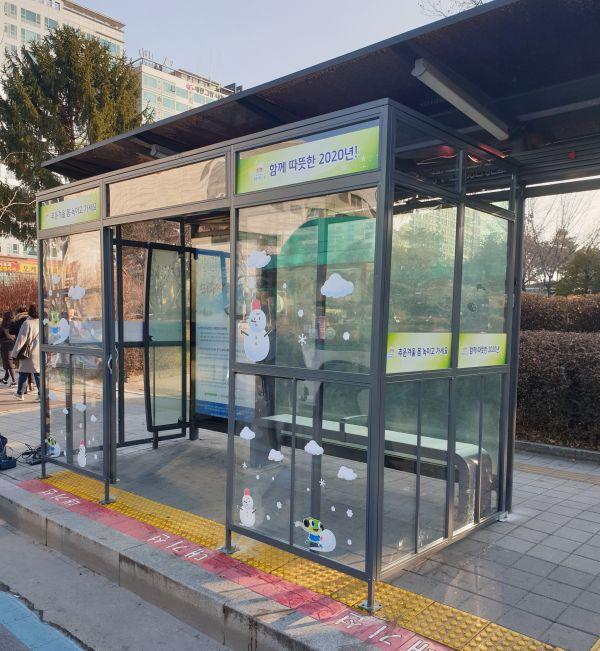 수원시는 지난 4일 수원시청 앞 버스정류장 2개소에 방한 부스를 설치했다.