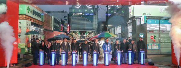 인천 서구는 문화관광형시장 육성사업 일환으로 설치한 강남시장 LED경관조명 시설물 점등식을 지난 7일 진행했다.