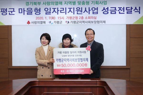 지난 7일 군청 소회의실에서는 양 기관 관계자 등이 참석한 가운데 공동모금회 성금 전달식과 더불어 경기북부 사랑의 열매로부터 제안받은 새로운 형태의 모금활동인 ‘희망가평·행복가평, 1004 나눔 릴레이’ 캠페인 협약식도 가졌다.