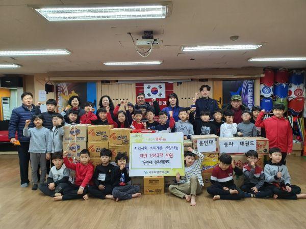 남양주시 퇴계원읍 소재 용인대송라태권도에서는 지난 7일 학원생 및 읍사무소 공무원, 봉사자 등 30여명이 참여한 가운데, 라면 나눔 행사를 가졌다.