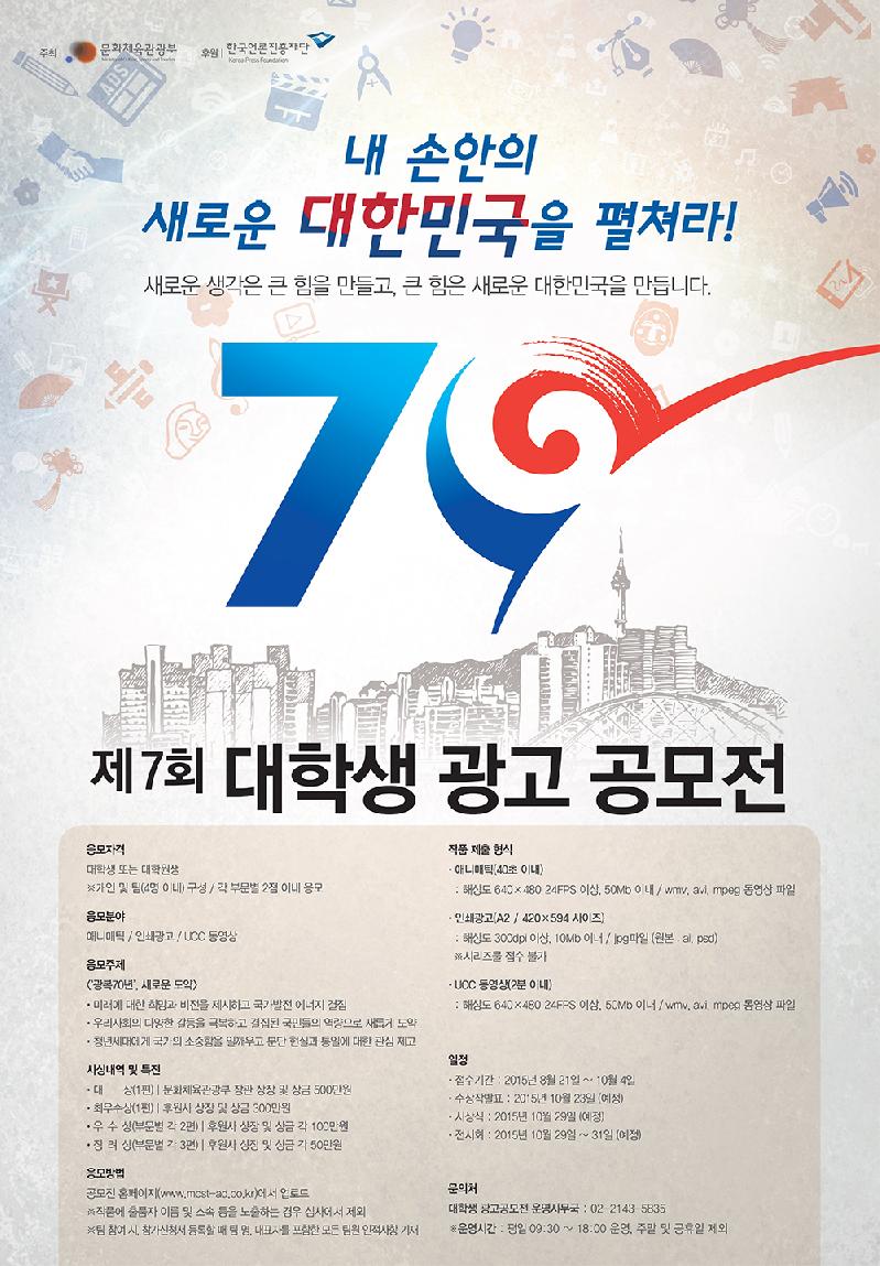 문화체육관광부(장관 김종덕, 이하 문체부)가 ‘제7회 대학생 광고 공모전’을 개최한다.