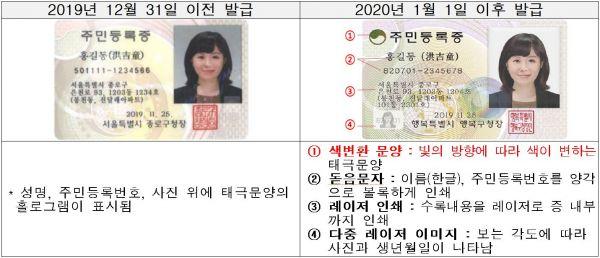 1월 1일부터 신규 또는 재발급 받는 주민등록증에 대해 내구성과 보안기능을 대폭 강화한 새 주민등록증이 도입된다.