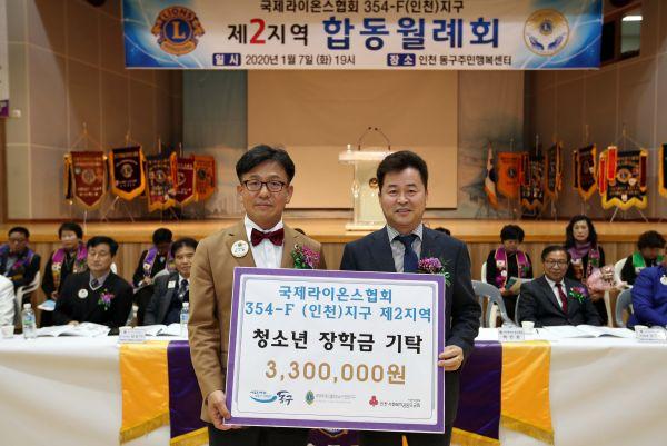 인천 동구는 지난 7일 주민행복센터에서 열린 국제라이온스협회 354-F지구 2지역 월례회의에서 회원들이 참석한 가운데 ‘장학금 후원 전달식’을 가졌다.