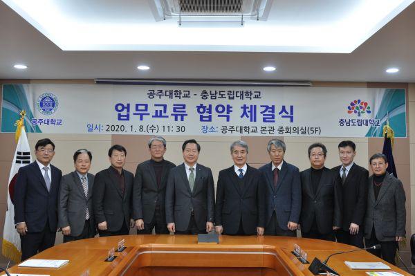 충남도립대학교는 8일 공주대학교에서 허재영 도립대 총장과 원성수 공주대 총장, 학교 관계자 등이 모인 가운데 ‘대학 업무 교류협력을 위한 협약’을 체결했다고 밝혔다.