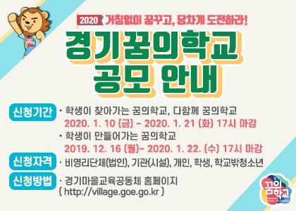 2020 경기꿈의학교 공모가 경기마을교육공동체 홈페이지에서 공고됐다.
