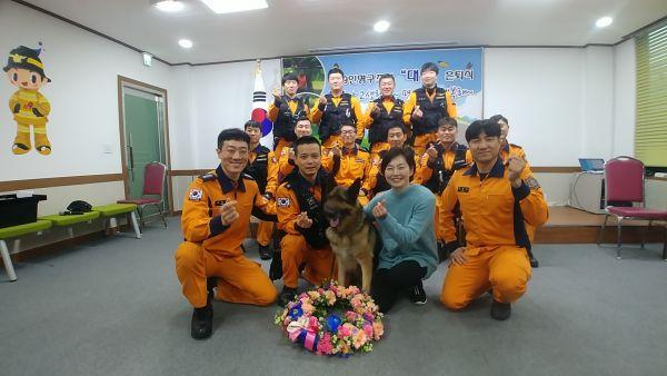 국민의 안전과 생명을 위해 국내 각종 재난현장에서 활약했던 경기북부소방재난본부 북부특수대응단 소속 인명구조견 ‘대담’은 이날 행사를 끝으로 7년여 간의 구조임무를 마치고 은퇴했다.
