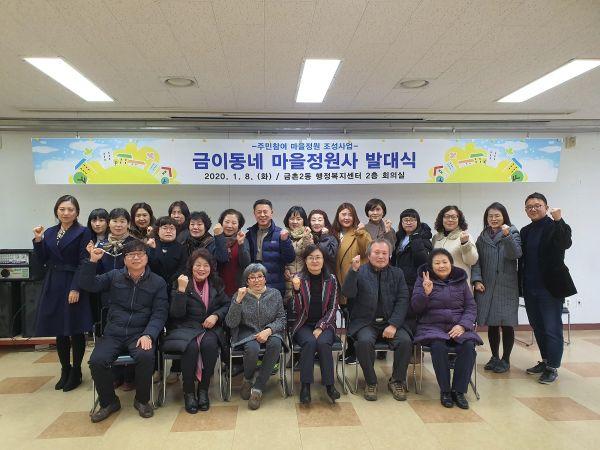 금이동네 마을정원사는 수목 및 화훼관리에 관심이 있는 지역주민을 대상으로 지난해 12월 한 달간 모집했으며 화훼농원을 운영 중인 농장주, 꽃집 운영 경력자, 목공 기술자 등 20명이 참여 신청서를 접수했다.