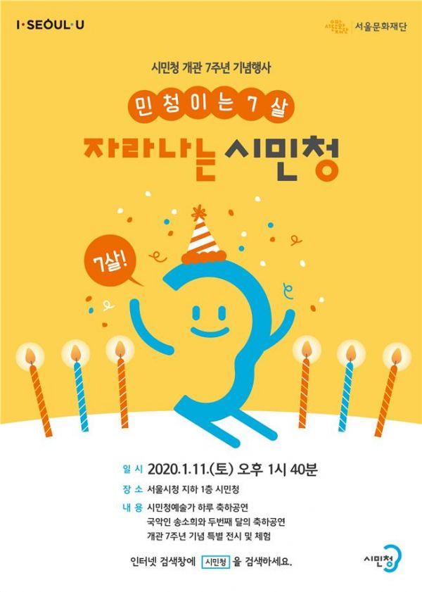 오는 11일부터 18일까지 서울시청 시민청에서는 시민청 개관 7주년을 기념하는 ‘민청이는 일곱 살, 자라나는 시민청’ 행사가 열린다.