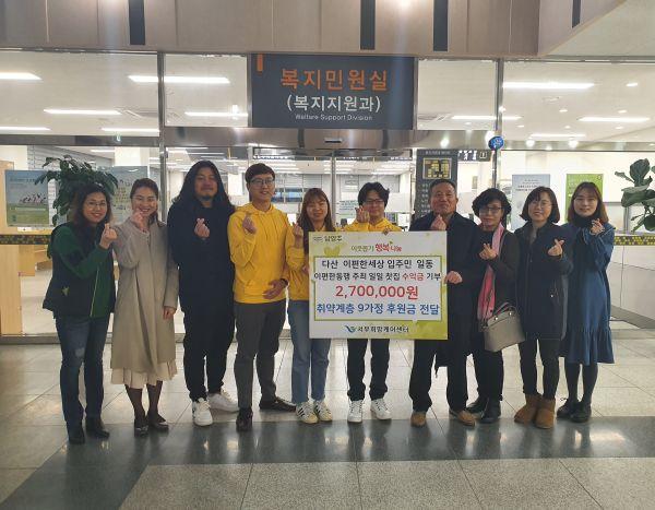 후원금은 ‘이편한동행’봉사단이 지난해 12월 1일 다산1동의 저소득 가정을 돕기 위해 단지 내 북카페에 일일찻집을 운영하고 그날 모인 수익금으로 마련됐다.