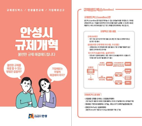 규제개혁 홍보 리플릿은 신제품이나 신기술에 대해 일정기간 기존 규제를 면제·유예하는 규제샌드박스 홍보 일상에서 느끼는 민생 불편 규제 기업경영을 저해하는 기업애로의 신고 방법과 절차 등을 소개하고 있다.