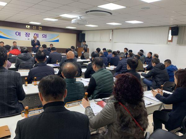 대신면은 지난 8일 대신면행정복지센터 회의실에서 43개리 마을 이장, 기관·사회단체장 등 50여명이 참석한 가운데 2020년 1월 중 제1차 이장회의를 개최했다.