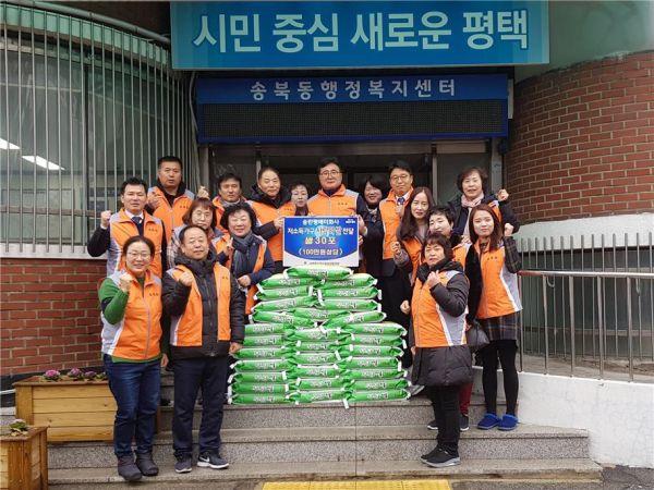 평택시 송탄평애미화사는 지난 8일 송북동 지역사회보장협의체에 다가오는 설을 맞이해 지역 내 어려운 이웃에게 온정의 손길을 전해 달라며 쌀 30포를 기탁했다.