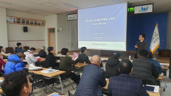 양주시농업기술센터는 지난 9일 농업기술센터 대회의실에서 강소농, 품목연구회 회원 등 농업인 70여명을 대상으로 ‘돈 되는 마케팅 영농설계교육’을 실시했다.