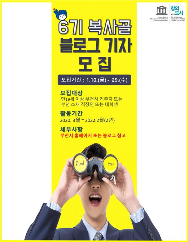 부천시가 다양한 콘텐츠를 통해 시정에 대한 관심과 이해를 높이고 공감을 이끌어낼 ‘6기 복사골 블로그 기자단’을 모집한다.