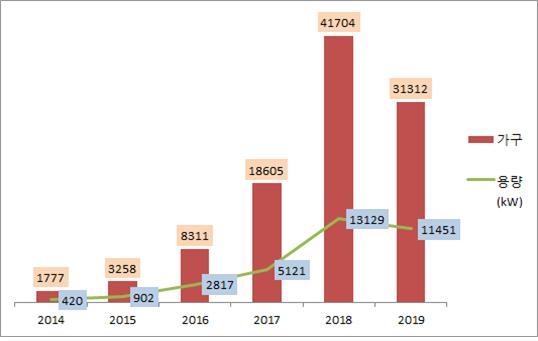 예컨대, 300W 규모 설치 시 '19년의 경우 46만7천원의 보조금을 지원받을 수 있었다면 올해의 경우 41만원을 지원받는다.