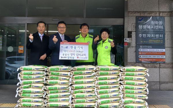 청학교회는 매년 어려운 이웃과 복지사각지대 대상자들을 돕기 위한 사랑의 쌀과 성금을 기탁하는 등 꾸준한 기부활동을 통해 이웃사랑을 실천하고 있다.