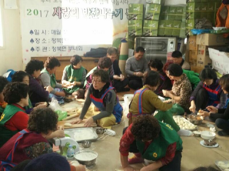 청북새마을부녀회는 매년 월2회 사랑의 밑반찬을 만들어 어려운 이웃에게 직접 전달하고 있으며 설에는 만두를, 추석에는 송편을 빚어 전달하고 있어 청북의 복지사각지대 해소에 크게 기여했다.