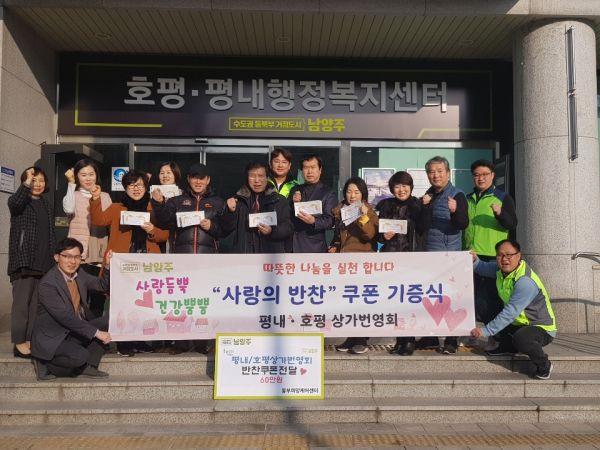 남양주시 ‘평내호평 상가번영회’는 지난 9일 호평동 지역사회보장협의체를 통해 동부희망케어센터에 반찬쿠폰을 기탁했다.