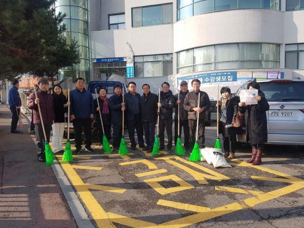 이날은 제설취약지역의 점포 6곳을 방문해 제설용구, 염화칼슘을 전달하고 인구밀집지역을 돌며 홍보전단지를 나누어 줬다.