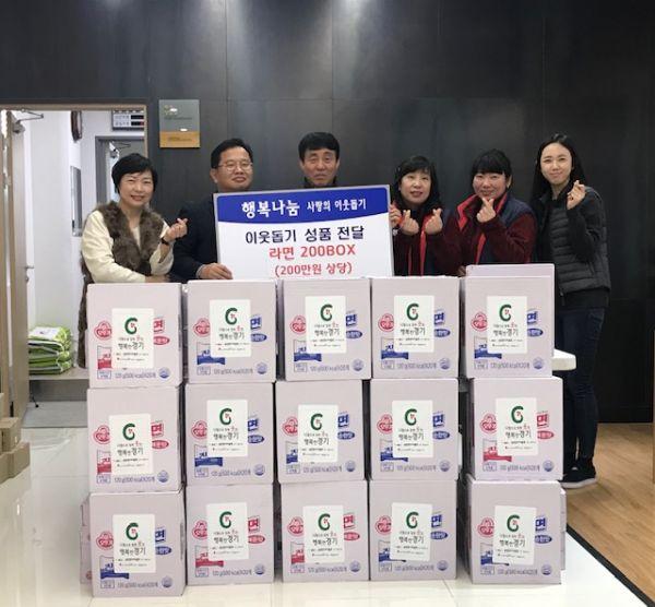 송탄판다아울렛은 지난 9일 지산동 독거노인 및 장애인 등 불우이웃에게 전달해 달라며 라면 200박스를 지산동행정복지센터에 기탁했으며 받은 라면은 관내 저소득 가정 200세대에게 전달될 예정이다.