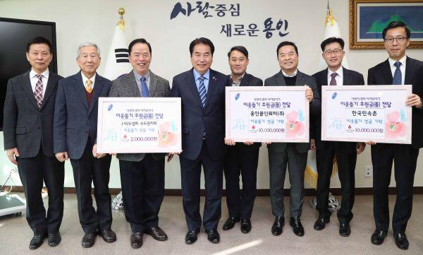 이날도 관내 기업·단체들이 백군기 시장을 찾아와 한국민속촌과 용인클린워터가 각각 1천만원씩, 사단법인 도성회 수도권지회가 2백만원의 성금을 기탁했다.