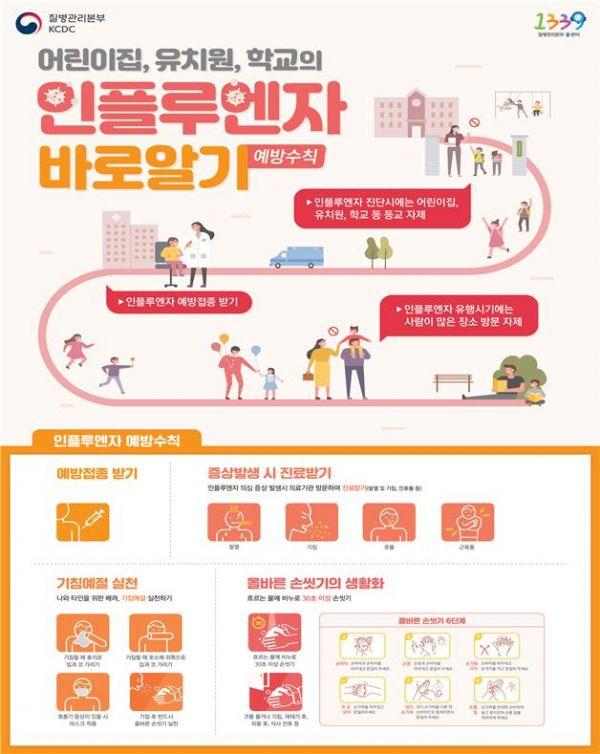 아울러 유행기간 동안 영유아 보육시설, 학교, 요양시설 등 집단시설에서 인플루엔자 예방관리 강화를 요청했다.