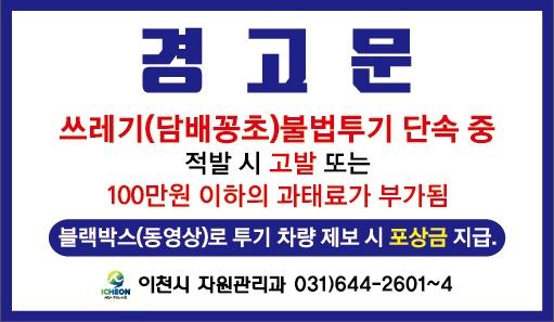 이천시는 설 연휴 전인 오는 13일부터 부발읍 아미리 상가에서 쓰레기 불법투기, 종량제봉투 미사용에 대한 집중단속을 실시한다.