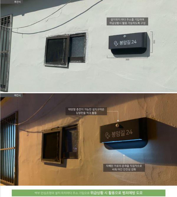 또, 범죄예방을 위한 CCTV 신규설치와 기존 CCTV의 인지력 향상을 위한 디자인개선, MMA 미끄럼방지 포장을 활용한 안심길 조성, 어두운 골목길을 밝혀 주는 태양광 벽부 안심조명 설치, 중심 상가거리와 쉼터 주변 건축물 외관 개선을 통한 마을 경관개선, 상권활성화 도모, 어린이 통학로 환경개선을 통한 안심통학로 등을 구축했다.
