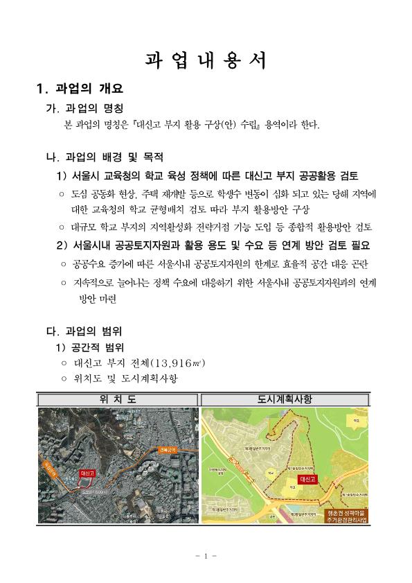 서울시는 대신고교 이전 시 기존 부지를 활용하기 위한 방안을 마련하기 위해 ‘대신고 부지 활용 구상 수립 용역’을 공고했다.