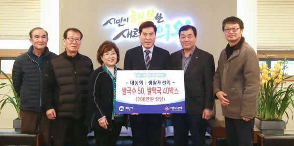 이날 ‘대농회’와 ‘생활개선회’는 지난 한 해 동안 감자, 배추 등 공동 영농포를 운영해 얻은 수익금으로 쌀국수 50박스, 쌀떡국 40박스를 기탁했으며 시는 단체로부터 전달받은 물품을 향후 저소득층에게 전달할 예정이라고 밝혔다.