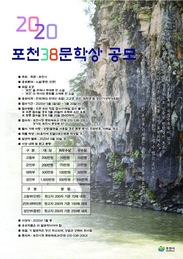 포천시는 ’2020 포천38문학상‘작품을 공모한다고 밝혔다.