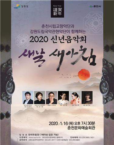 강원도립국악관현악단과 춘천시립교향악단이 2019년에 이어 두 번째로 개최하는 이번 신년음악회는 국악기와 서양악기가 어우러진 100인조 오케스트라로 박한규 작곡의‘강원아리랑’, 요한 슈트라우스 2세의 박쥐 서곡, 소리꾼 김은정, 이소연 그리고 양금 연주자 윤은화가 출연 도민들에게 평화와 안녕을 기원하고 새해의 힘찬 메시지를 전달하는 뜻 깊은 자리가 될 것으로 기대하고 있다.