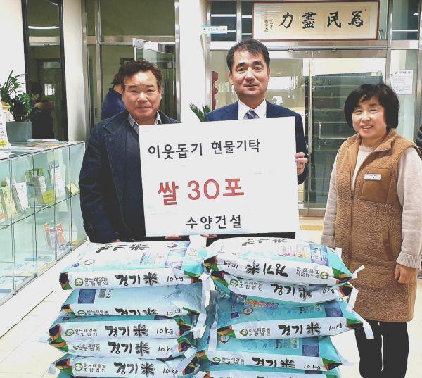 지난 9일 ㈜수양건설은 설명절을 앞두고 이웃돕기를 위해 백미 10kg 30포를 산북면행정복지센터에 전달했다.