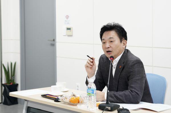원희룡 제주특별자치도지사는 13일 오전, 도내 51,000여 곳의 소상공인·중소기업을 일선에서 지원하고 있는 제주신용보증재단을 방문해 설맞이 지역경제 활성화를 위한 지원 대책을 논의했다.