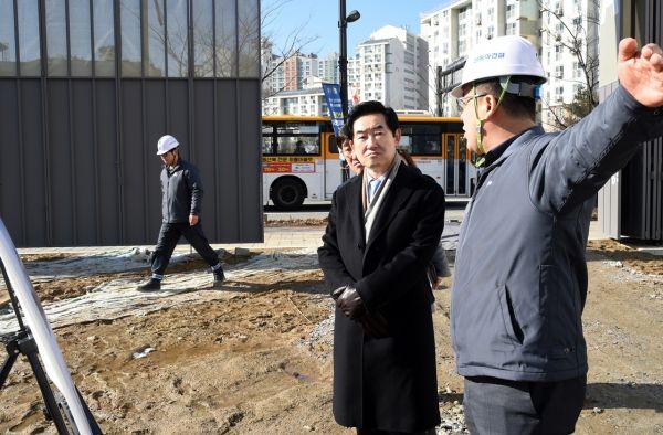 안병용 시장은 개청식 참석 전, 송산3동 공공복합청사 공사 현장을 방문해 관계자들로부터 추진 상황을 보고 받은 뒤, 안전에 만전을 기해줄 것을 당부했다.