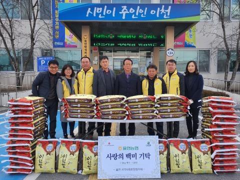 율면농협은 지난 13일 설을 맞아 지역의 어려운 이웃을 위해 백미 50포를 율면 지역사회보장협의체에 기탁했다.