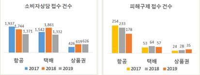 공정위와 소비자원에 따르면 항공, 택배, 상품권 서비스 관련 분야에서 소비자 피해가 매년 1,000여건 이상 발생하고 있는 것으로 나타났다.