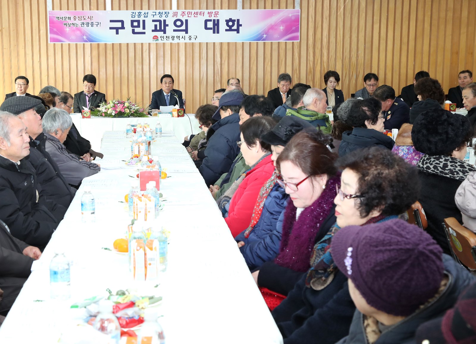 | 인천중구청장 구민들과 대화를 나누며 소통하는 모습 <사진=미디타임즈> |