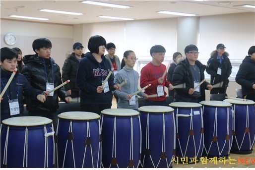| ‘2016 겨울방학 꿈틀이학교’ 난타수업 모습. <사진/ⓒ미디어타임즈> |