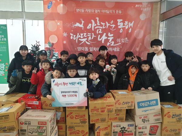 용인시 기흥구는 기흥라이온스클럽과 영덕동 경희대 석사 STA 태권도장 원생들이 어려운 이웃에 전해달라며 라면을 기탁했다고 14일 밝혔다.