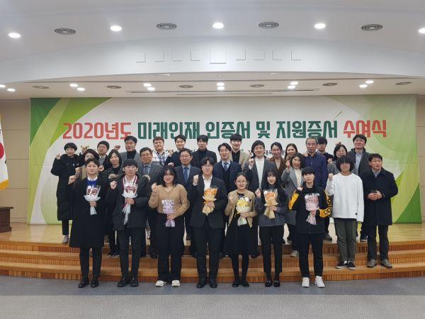 강원인재육성재단은 14일 강원도청 별관 회의실에서 2020년도 ‘강원도 미래인재’ 인증서 및 지원증서 수여식을 개최했다.