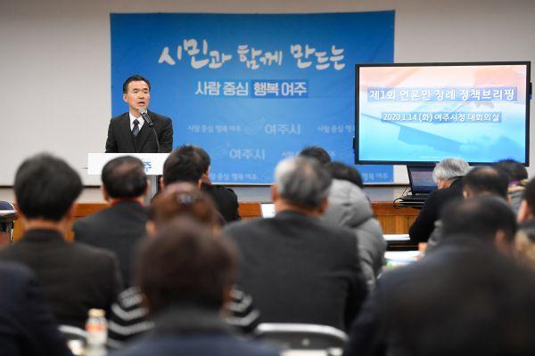 여주시 첫 정책브리핑이 14일 여주시청 대회의실에서 지역 및 출입 언론인 60여명이 참석한 가운데 열렸다.