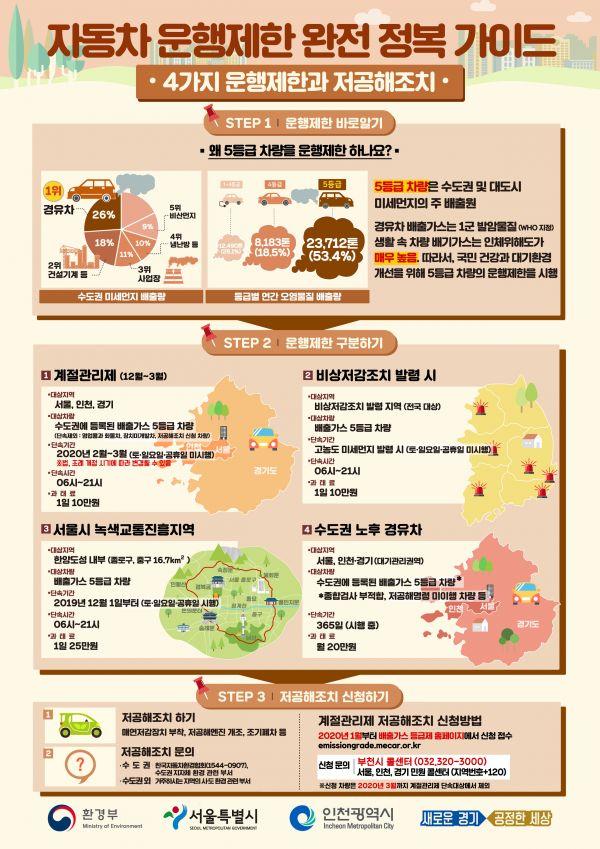 5등급 차량의 운행을 제한하고 과태료를 부과하는 제도는 시기별, 지역별로 4가지가 있으며 이중 미세먼지 계절관리제는 관련 법과 조례가 개정된 후 이르면 2월 시행 예정이다.