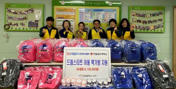 서구 드림스타트는 지난 10일 한전KPS서인천사업처와 민들레지역복지의 후원으로 올해 초등학교 및 중학교 입학을 앞둔 드림스타트 아동 39명에게 책가방식을 지원한 것이다.