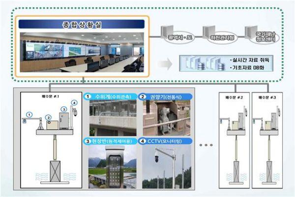 ‘스마트 홍수관리시스템’은 그동안 민간 수문관리인이 경험적으로 조작해온 국가하천 내 수문의 운영 방식을 개선하고자 다양한 정보통신기술을 적용하는 사업으로수문상태와 하천수위를 실시간으로 확인하고 필요시 종합상황실에서 수문을 원격으로 열고 닫을 수 있도록 관련 설비를 구축·운영한다.