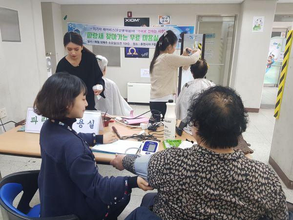 또한 이미용서비스를 기다리는 어르신에게 혈압, 혈당 체크 및 건강 상담 등 찾아가는 방문간호서비스를 진행해 만족도를 높였다.