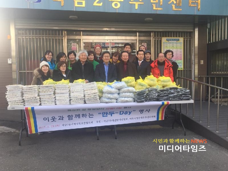 [미디어타임즈=문상수 기자] 인천광역시 서구 석남2동 지역사회보장협의체(공동위원장 이형순)는 설 명절을 맞이해 지난해 석남2동 지역사회보장협의체로 지정기탁된 석남2동 이웃사랑 음악회 수익금으로 자생단체연합회와 연계하여 지난 19일 풍성한 설 명절맞이 사랑나눔 행사를 했다. 이 날 이웃과 함께하는 ‘만두-Day’행사에는 석남2동 지역사회보장협의체, 주민자치위원회, 통장자율회, 새마을협의회, 새마을부녀회, 바르게살기위원회, 방위협의회 등 7개 자생단체회원 50여명이 참여한 가운데 만두 2,500개를 정성껏 빚어 떡국 떡, 재래 김을 같이 담아 주변의 어려운 이웃 150여 가정에 전달하였다. 윤병선 석남2동장은 “추운 날씨와 바쁜 일정에도 관내 소외된 이웃들을 위해 사랑 나눔 행사로 봉사하는 자생단체 연합회에 감사드리며, 앞으로도 이웃끼리 오손도손 정감이 넘치는 훈훈한 마을 조성을 위해 최선을 다하겠다.”고 감사의 뜻을 전했다